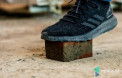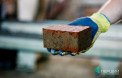 Андрій Разумовський бере в руку один з них. Свіжопресована бруківка, попри очікування (все ж таки зроблена із щойно вимішаного розчину!) тримається купи!