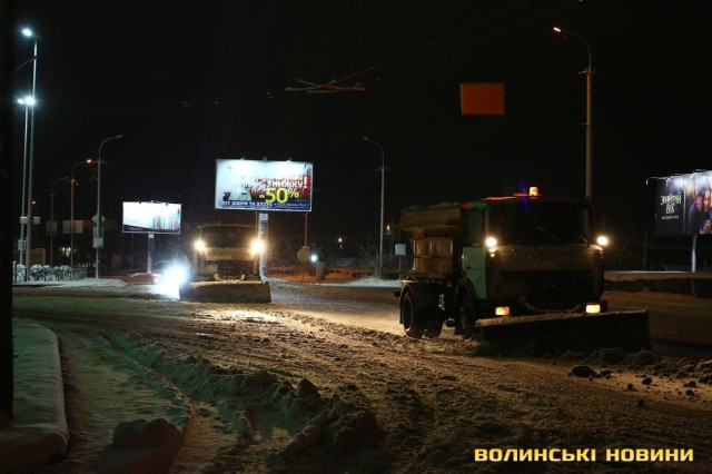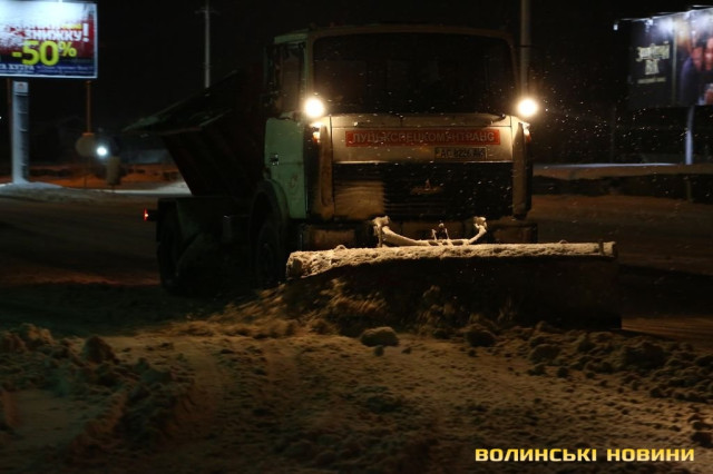 Через інтенсивний снігопад, який розпочався увечері 3 лютого, на вулиці Луцька вивели більше 20 одиниць техніки. Місто починають прибирати ще з вечора та продовжують вночі, коли трафік менш інтенсивний.