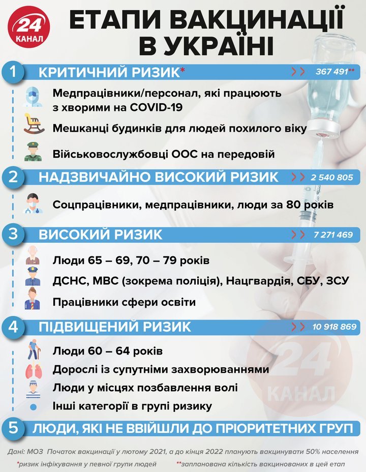 Він також повідомив, що кожен медик, який бореться з коронавірусом, – герой. Першу вакцину можуть зробити кому завгодно. Медики заслуговують отримати вакцину та бути в ефірі.Уже в лютому 2021 року Україна отримає першу партію вакцин від Pfizer-BioNTech – 117 000 доз. Окрім того, упродовж перших 6 місяців року Україна зможе ще отримати від 2,2 до 3,7 мільйона доз вакцини AstraZeneca/Oxford.