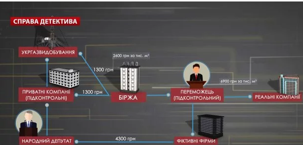 На той час ринкова вартість 1 тисячі метрів кубічних природного газу становила 7 тисяч гривень. Проте суть цієї схеми була у тому, що газ державного видобутку реалізовувався на фіктивних аукціонах за ціною, наприклад, 2,5 тисячі гривень за метр кубічний. В подальшому фіктивні компанії, які також були під контрольні організатору злочинної організації, були переможцями на цих аукціонах. А отриману сировину – природний газ – продавали вже приватним компаніям, реальному сектору економіки, за ціною 6 тисяч 900 гривень за метр кубічний. Тому ця різниця в 4 тисячі гривень поступово накопичувалася і осідала на рахунках компаній підконтрольних організатору злочинної організації.