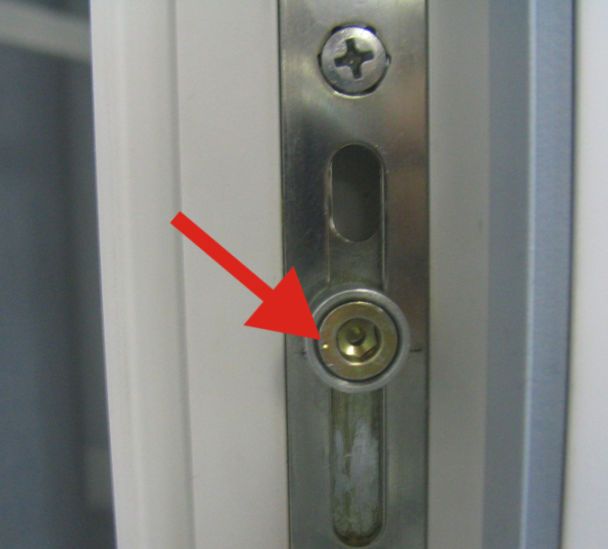 Знайдіть відмітку на цапфі, що вказує на силу притискання. Чим позначка ближче до вуличного боку, тим сильніше прилягання. Для цапф зі зміщеним центром – чим центр ближче до вулиці, тим щільніший притвор.Віконним ключем, зірочкою або плоскогубцями повернути ексцентрик: овальний – у горизонтальне положення, круглий с рискою або крапкою – в бік вулиці, круглий зі зміщеним центром – широким боком до приміщення.