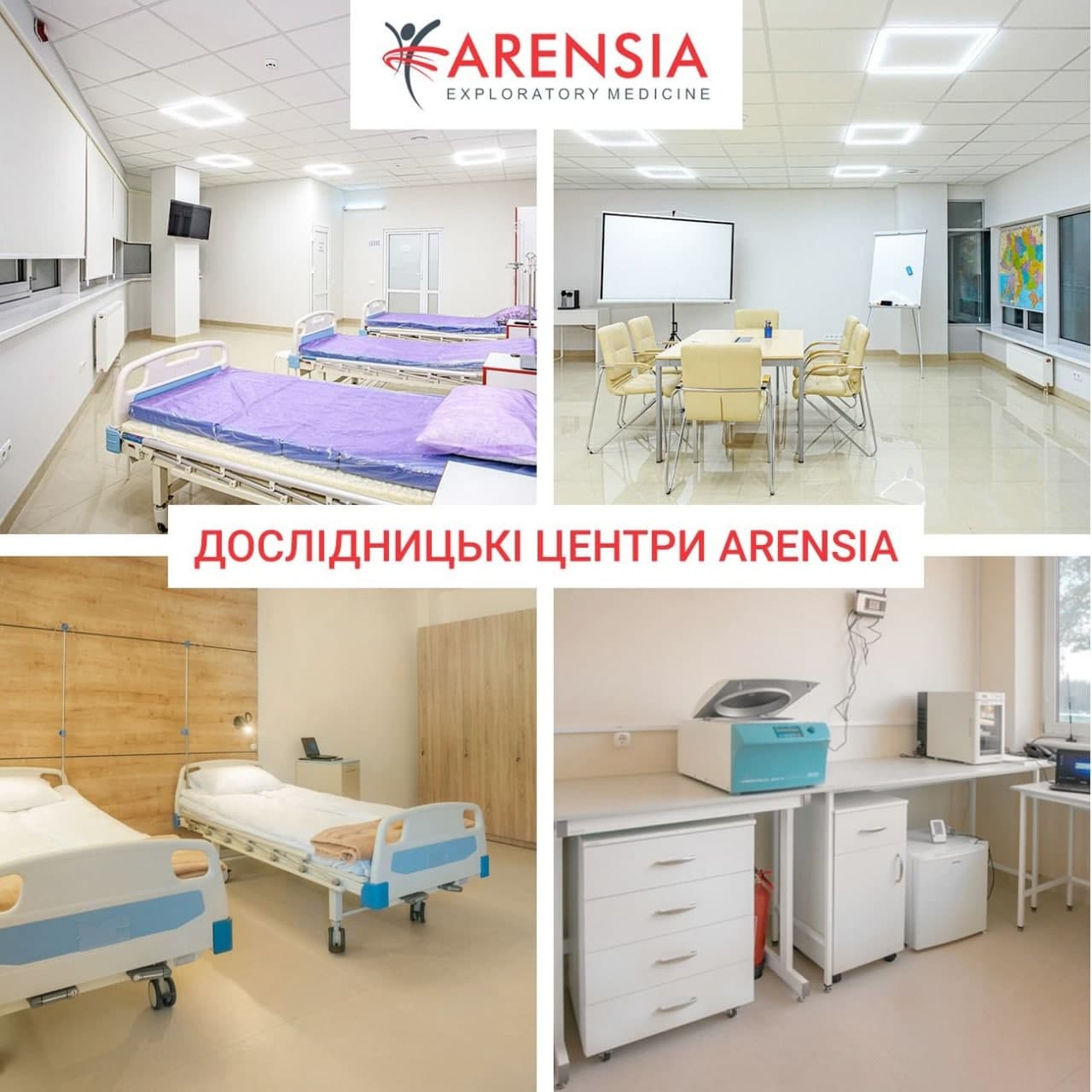 ARENSIA має сучасні спеціалізовані центри для проведення клінічних досліджень в різних країнах Європи. Дослідницькі центри Arensia оснащені всім необхідним для обслуговування і комфорту пацієнтів. Дослідницькі центри повністю забезпечені сучасним медичним обладнанням, що дозволяє гарантувати безпеку пацієнтів при проведенні клінічних досліджень.