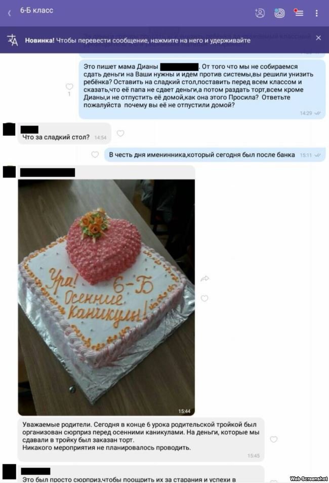 Але, за словами Тетяни, вчителька змусила її дочку піти з класом, а згодом і бути присутньою на розрізанні торта.