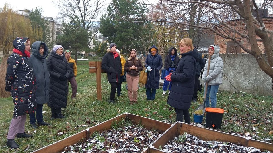«Зимою це буде такий корм для мікроорганізмів і черв’ячків: вони будуть їсти і віддавати нам свої корисні речовини, тобто поліпшувати ґрунт. І навесні вже буде гарний перегній, будуть висаджуватись овочі, зелень і це буде корисний органічний продукт», – каже жінка.На міському городі є компостер, зазначила Катерина Демидюк, де органічне сміття переробляється на нову землю, яку можна використовувати.