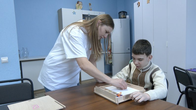 Тетяна Сніжко родом із Торецька Донецької області. До Луцька жінка разом з родиною переїхала три з половиною роки тому. У групі денного перебування для дітей з інвалідністю – її дев’ятирічний син Віталій. У хлопчика діагноз аутизм.«У нього затримка мовлення, гіперактивність. Ну, несподівані реакції можуть бути – може сміятися, потім плакати. Тут він отримує все, що потрібно для соціуму, бо дуже важко адаптуватися», – каже Тетяна Сніжко.Група денного догляду працює у двох локаціях, розповідає Юлія Поліщук. Одне приміщення – на вулиці Огієнка, 20, там працюють із дітьми дошкільного та раннього шкільного віку, інше – на вулиці Кафедральній, 17. Там підліткова група для дітей від 12 до 18 років.Анна Бондаренко 10 років проводить фізичну реабілітацію для дітей, у громадській організації «Янголята» працює 3,5 року. Вона проводить різні заняття для укріплення м'язів скелета та всього тіла.Алла Кригіна за фахом лікар. Жінка розповідає, що не могла працювати за спеціальністю, бо має дитину з аутизмом, тому перекваліфікувалася на логопеда. Нині працює над розвитком мовлення та комунікації у групі денного перебування дітей.«Послуга денного догляду – це велика можливість для батьків якось перезавантажитися, видихнути, залагодити свої справи, а дітям – поліпшити навички спілкування», – зазначає Алла Кригіна.