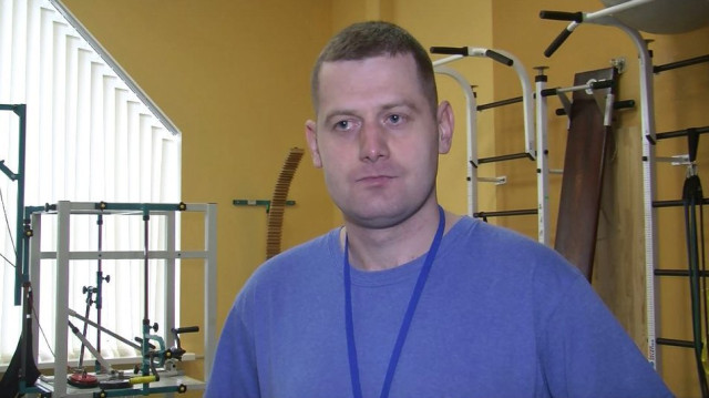 Зі слів фізичного терапевта Андрія Гузова, цей військовослужбовець відновлюється у залі фізичної реабілітації високої інтенсивності після інсульту. У чоловіка було два випадки інсульту в різні проміжки часу.