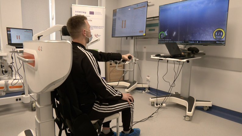 «Тренажери допомагають зробити замір, визначити силу м’язів, визначити суглоби, які мають функціональні порушення, вже коли система все оцінила, зробила нам звіт по тому, що відбувається з кінцівкою, далі ми переходимо до тренувальних ігор, де всі показники попереднього тестування враховані», – розповідає Христина Савюк.Апарат сам моделює рухи суглобів. Пацієнт фокусується лише на комп’ютерній грі.