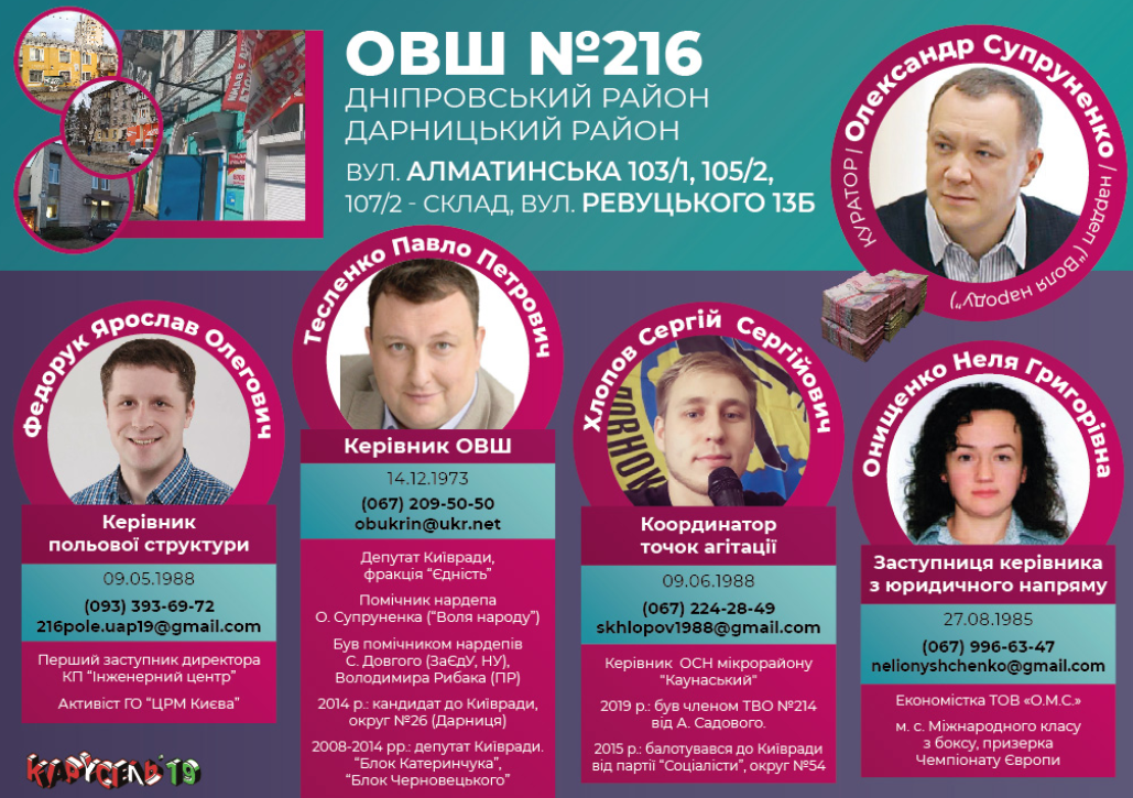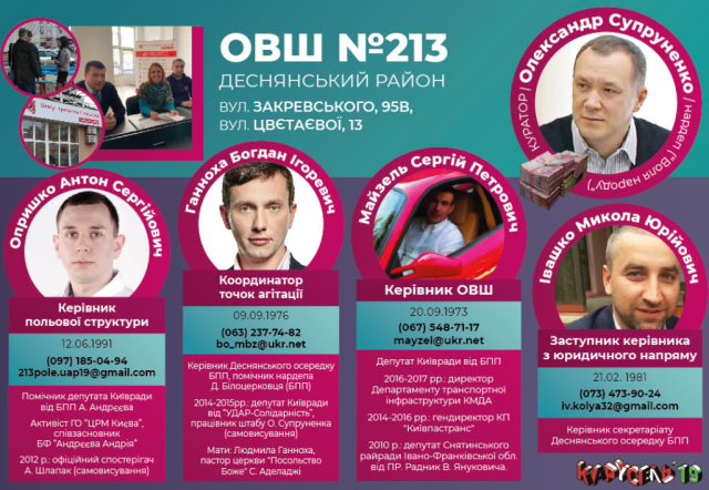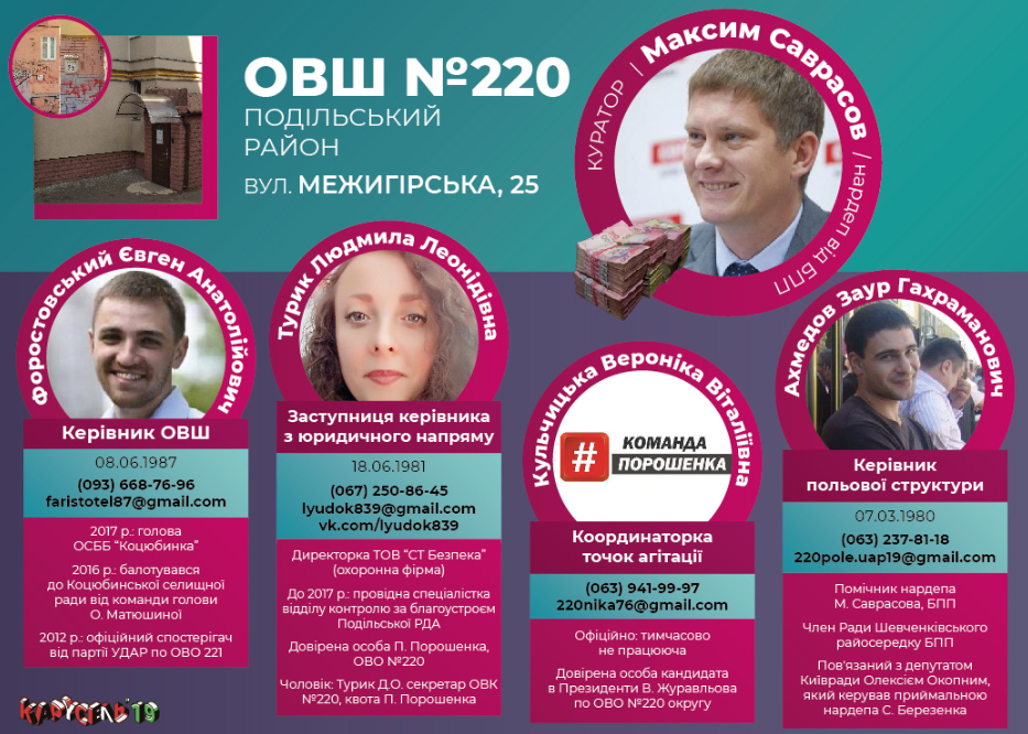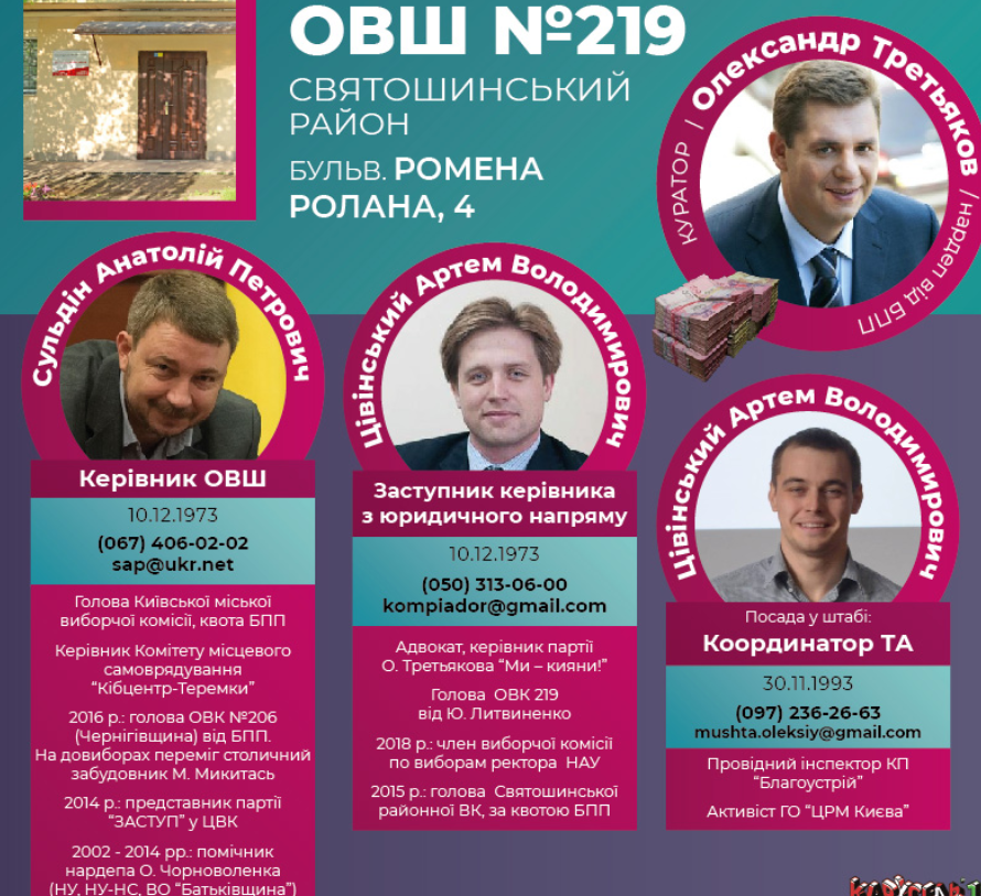 Їх «досьє» направляються до Київського виборчого штабу (КІШ), який і контролює як роздачу грошей, так і окружні штаби.
