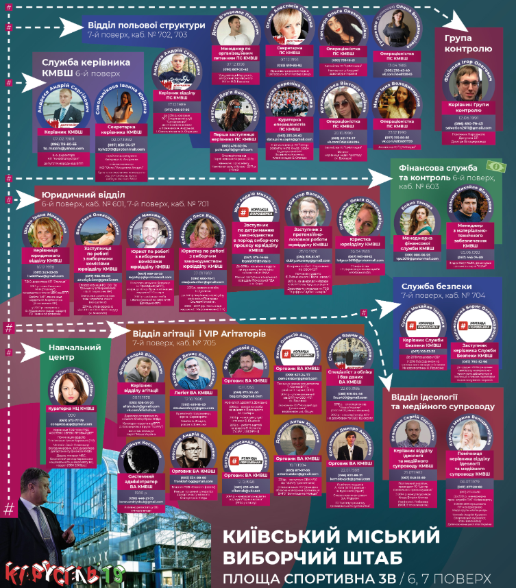 Сам же Київський штаб, як з’ясувала «Карусель», розташовується на Спортивній площі, 3в, займаючи 6 і 7 поверхи. «Там сидить верхівка піраміди», – йдеться в статті.