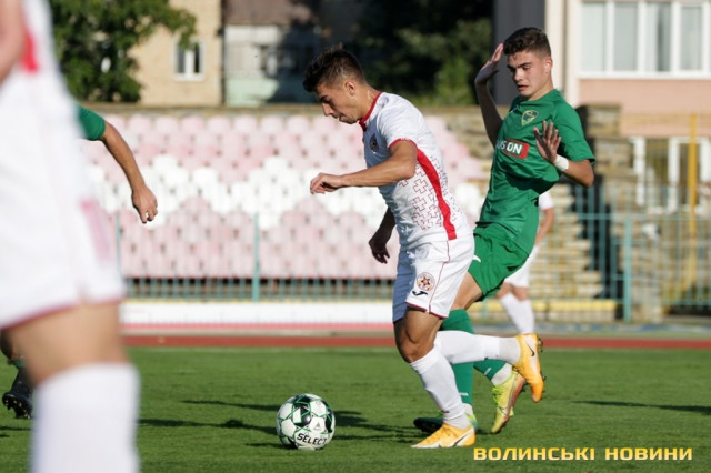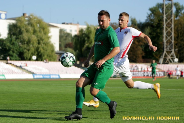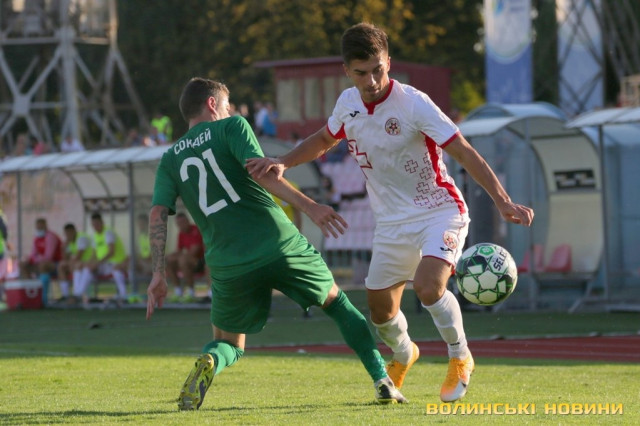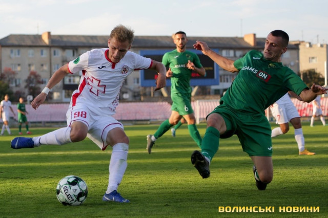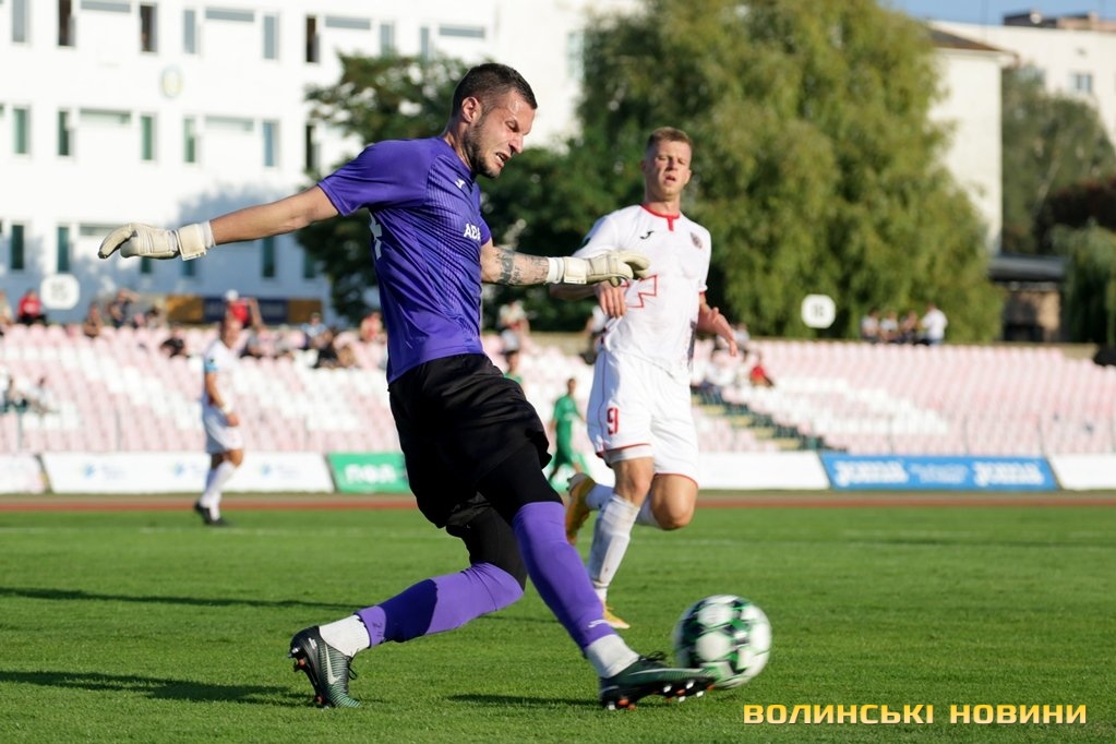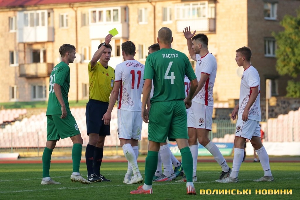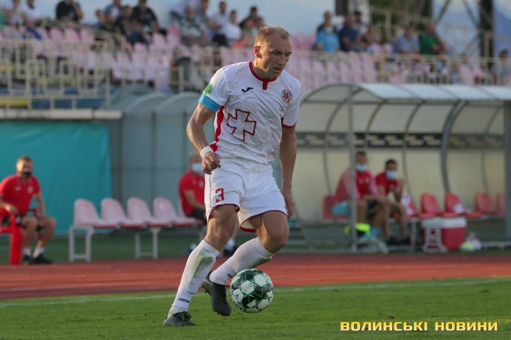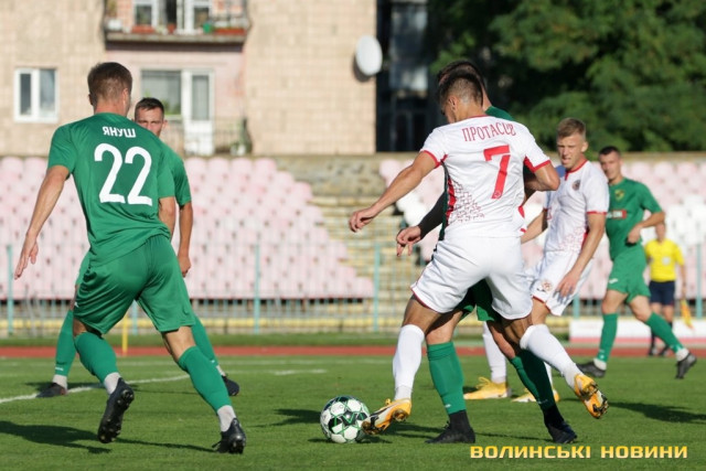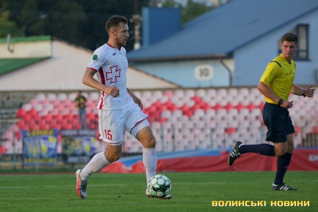 Поки «Волинь» рахувала футболістів, які зможуть зіграти в Кубку, «Прикарпаття» підсилили два «ексволиняни» Ростислав Волошинович та Ярослав Конкольняк. Цікаво, що ще раніше до прикарпатців приєднався Сергій Мелінишин, який також свого часу виступав за «Волинь». А місце на тренерському містку зайняв тренер «Волині U-19» у минулому сезоні Руслан Мостовий. Він одразу ж кинув у бій колишніх «волинян», виставивши їх у стартовому складі, щоправда, Конкольняк отримав пошкодження на передматчевй розминці, тож не вийшов у старті.Попри спалах COVID-19 в клубі, Василь Сачко також виставив доволі боєздатний склад: на чолі з каптаном Сергієм Сімініним грали Леванідов, Чачуа, Протасов та Цюпа. На лаві для запасних здебільшого була молодь з «Волині-2».Старт поєдинку виявився доволі спокійним, однак м’ячем трішки більше володіли гості. Саме івано-франківці створили перший небезпечний момент у матчі – Андрій Вацеба, замикаючи простріл партнера, влучив у стійку воріт Леванідова. Натомість «Волинь» відповіла моментом Чачуа, щоправда, він виявився не таким небезпечним, адже удар хавбека заблокували захисники.А на 29 хвилині «Прикарпаття» відкрило рахунок. Гравець прикарпатців, скидаючи головою м’яч після подачі партнера, влучив у Сергія Сімініна. Арбітр розгледів гру рукою в капітана «Волині» та вказав на одинадцять метрів. До точки підійшов Роман Барчук, який впевнено розвів Леванідова та м’яч по різних кутах.