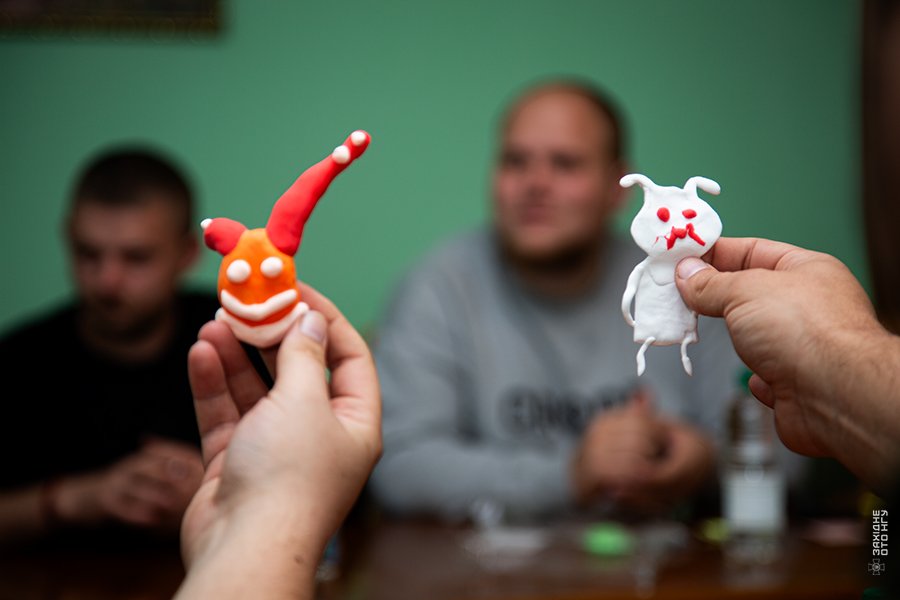 Під час занять гвардійці працюють з пластиліном і папером, створюють прості символічні композиції. Такі вправи розвивають моторику, заспокоюють і допомагають відволіктися від важких спогадів. Цього разу особливо теплою стала зустріч із дуетом артистів: зал наповнився народними піснями, гвардійці підспівували, а дехто навіть брав мікрофон і співав разом з виконавцями.