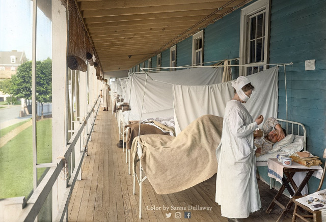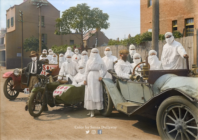 Ось ще декілька фотографій про те, як люди дотримувалися рекомендацій під час карантину за пандемії іспанського грипу сто років тому. Історичні знімки тих часів колоризувала фоторедакторка Sanna Dullaway та інші цифрові художники.