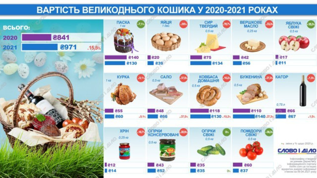 Православні християни святкуватимуть Великдень 2 травня. Цьогоріч ціна стандартного великоднього кошика у порівнянні з минулим роком зросла на 15,5%.