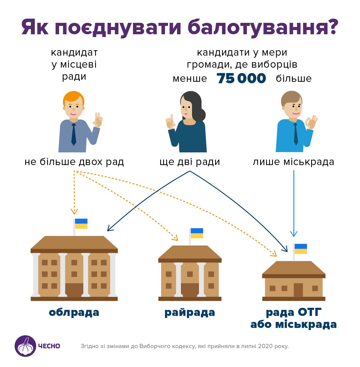 Верховна Рада внесла зміни до Виборчого кодексу. Цьому передувала адміністративна реформа – істотне укрупнення громад і районів. Унаслідок реформи кількість депутатів значно скоротиться, а отже – зросте конкуренція. Кандидати зможуть балотуватися щонайбільше до двох рад одночасно, хоча раніше могли змагатися одразу за 4 мандати.