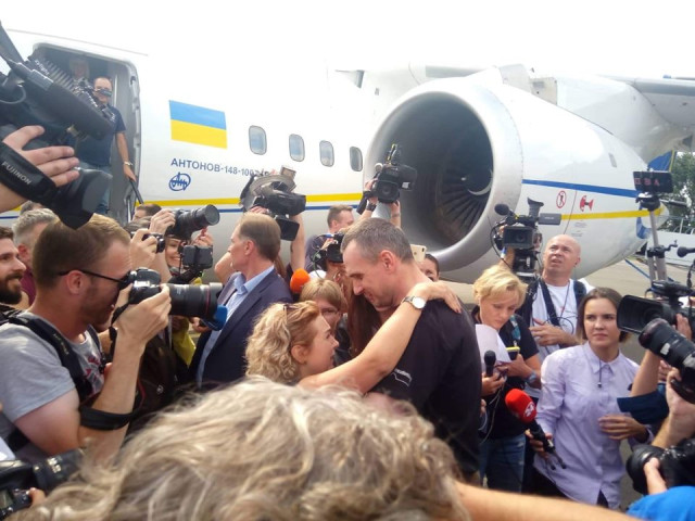 Як зустрічали Сенцова і звільнених з полону українців: зворушливі фото