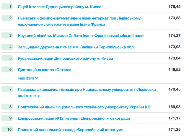 Це дані рейтингу шкіл України від освітнього порталу Education.ua, який був сформований на основі офіційних результатів національного мультипредметного тесту 2025 року.
