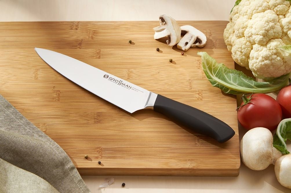 Перший ніж, який потрібно мати на кухні вдома, – це шеф-ніж. Так називають основний робочий ніж, яким шаткують, нарізають, подрібнюють, згрібають широкою площиною з обробної дошки, товчуть руків’ям у ступці і навіть відбивають, розбивають і розколюють за допомогою обуха.Це самий робочий ніж на кухні взагалі. Особливо, якщо багато знати про те, як його можна використати.