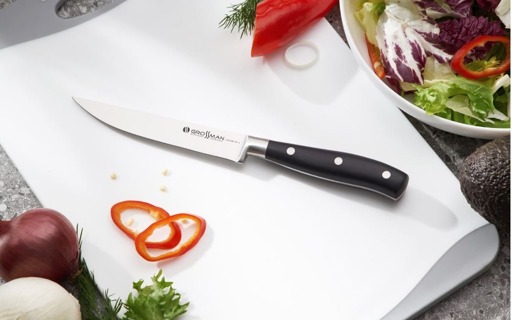 Може універсал і дещо менш ефективний у великій роботі, ніж шеф-ніж, але його головна перевага – оптимальність. Цей ніж середній у всьому, відтак може замінити багато інших ножів.