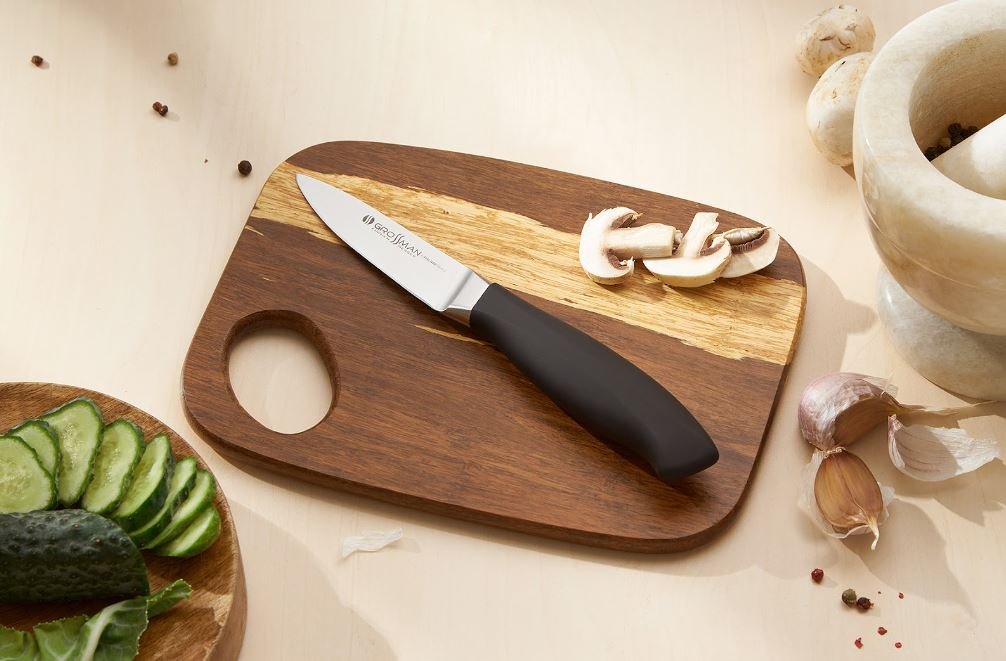Головна перевага цього ножа – легкість, маневреність та компактність. Мабуть, тільки ним дійсно зручно працювати, взявши ніж в одну руку, а продукт, що обробляється, – в іншу.