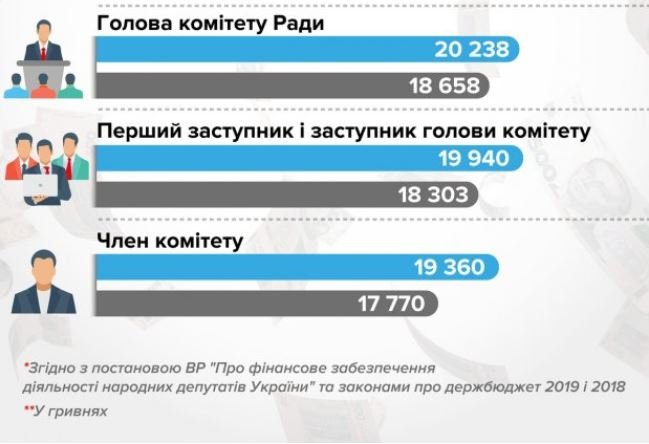 Посадовий оклад залежить від посади кожного законодавця. Жоден депутат не може бути «просто» депутатом. Він займає у парламенті певну посаду.