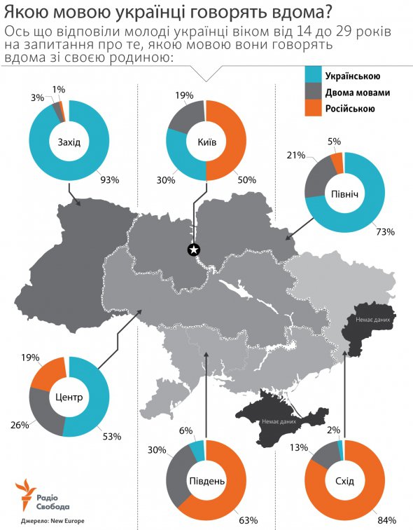 Якою мовою спілкується молодь в Україні. Карта