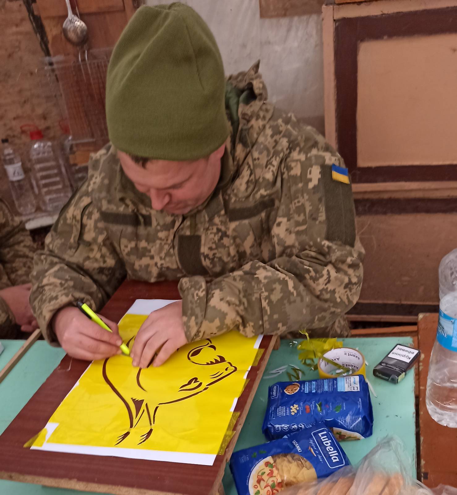 Уже на службі як дизайнер створив шеврон для свого 25-го ОШБ. Дуже цим пишався.