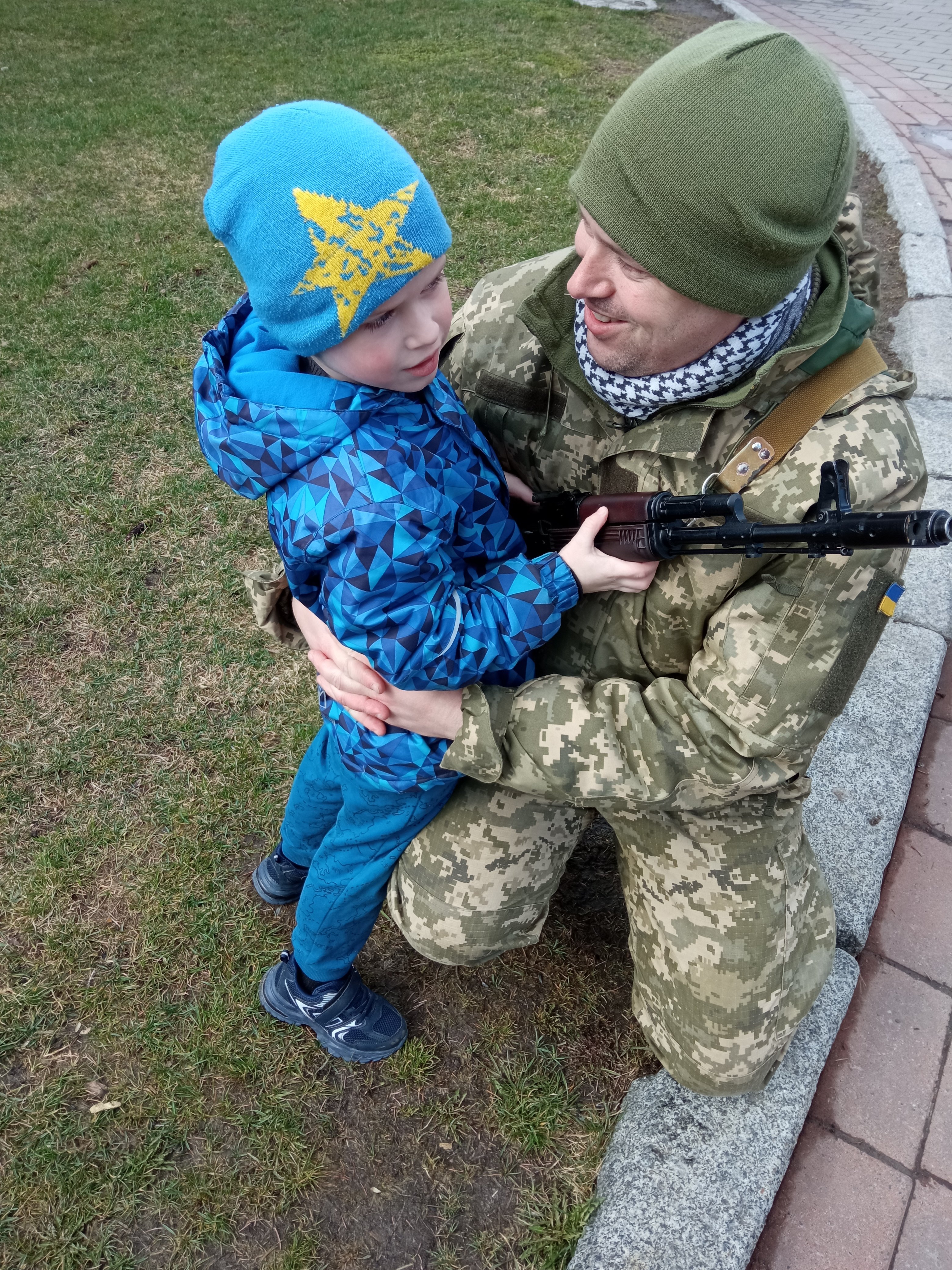 «Тоді всі обговорювали, що може початися серйозна війна. Хтось вірив, хтось – ні. Ми ж особливо про це не говорили й надміру не тривожилися. Він постійно щось докуповував, готувався. Але я бачила в його очах спокій і готовність до всього. Звісно, в глибині душі кожен сподівався, що нічого страшного не трапиться, – пригадує. – 24 лютого він цілий день десь ходив, щось купував, зняв нам якісь гроші. Приходив і знову кудись йшов. А ввечері сказав, щоб 25 лютого я прийшла під військкомат, мовляв, у нас буде годинка, щоб попрощатися».