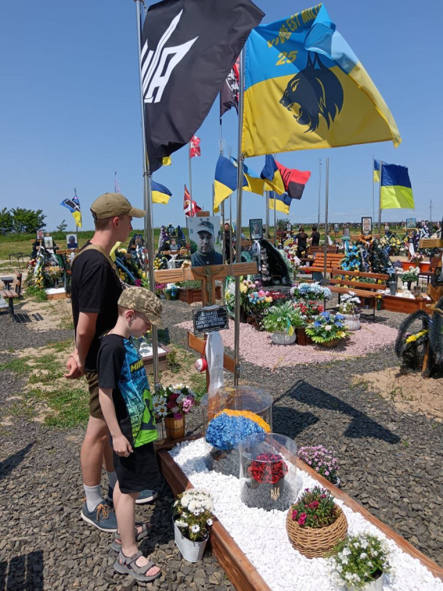 Коли сім’ї принесли сповіщення про смерть, Орест взяв татове фото й спокійно звернувся до дядька-військового: «Гляньте, який в мене гарний тато був…» І кремезний чолов’яга, який ледь не щодня бачить горе війни, не стримав сліз.