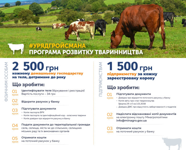 Передбачених у Державному бюджеті коштів цілком достатньо, аби державну допомогу отримав кожен, хто звернеться по неї. Зокрема, на допомогу по утриманню телят домогосподарствами держава виділила 700 млн грн., на розвиток фермерських господарств – 1 млрд грн.Для отримання коштів встановлені прості та прозорі процедури