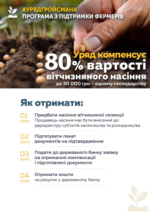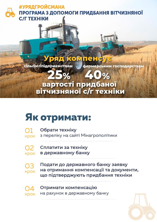 Для малих і середніх фермерів і домогосподарств передбачені окремі програми підтримки