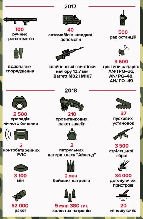 США у 2017 році виділили 560 мільйонів доларів для забезпечення ЗСУ необхідним обладнанням. Зокрема, йдеться і про летальну зброю, яку Америка постачала Україні у 2017-му.