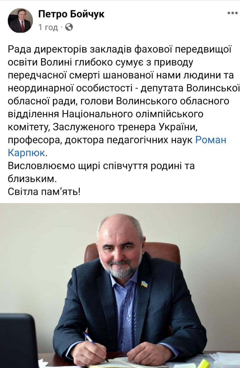 Інформаційне агентство Волинські Новини висловлює щирі співчуття рідним та близьким Романа Карпюка.
