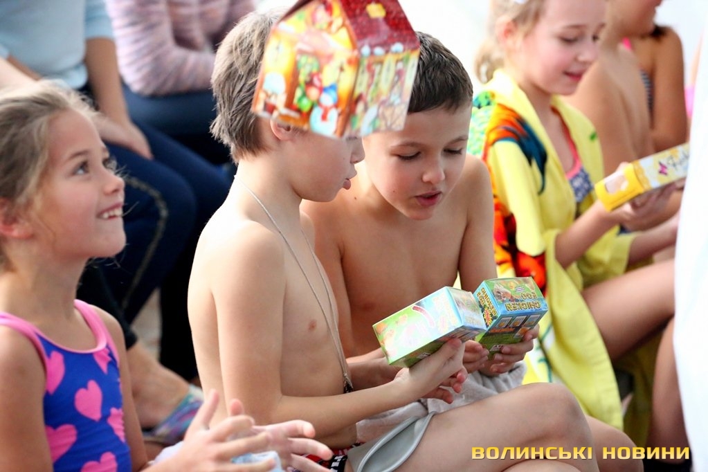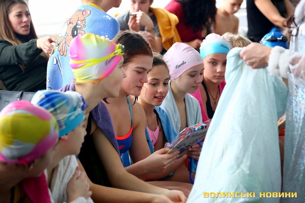 Зайшовши у басейн, можна було одразу помітити веселих дітлахів з батьками, які вже очікували старту святкової новорічної програми. Зокрема, дітей віком від семи до чотирнадцяти років, яких, до слова, було 44, поділили на команди.