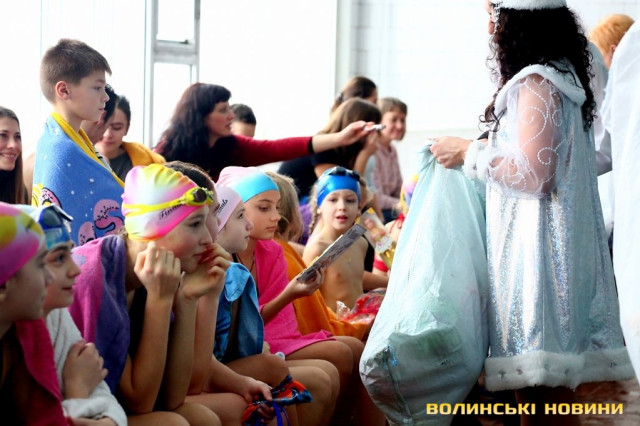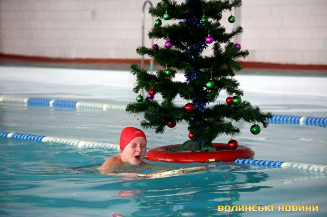 Ялинка на воді та естафети: у луцькому університеті – новорічний ранок в басейні. Фоторепортаж