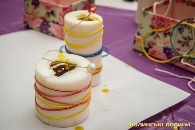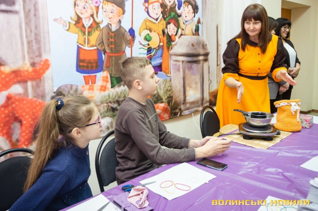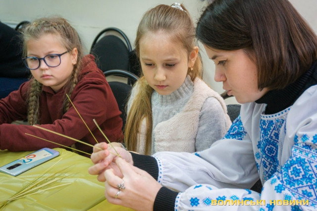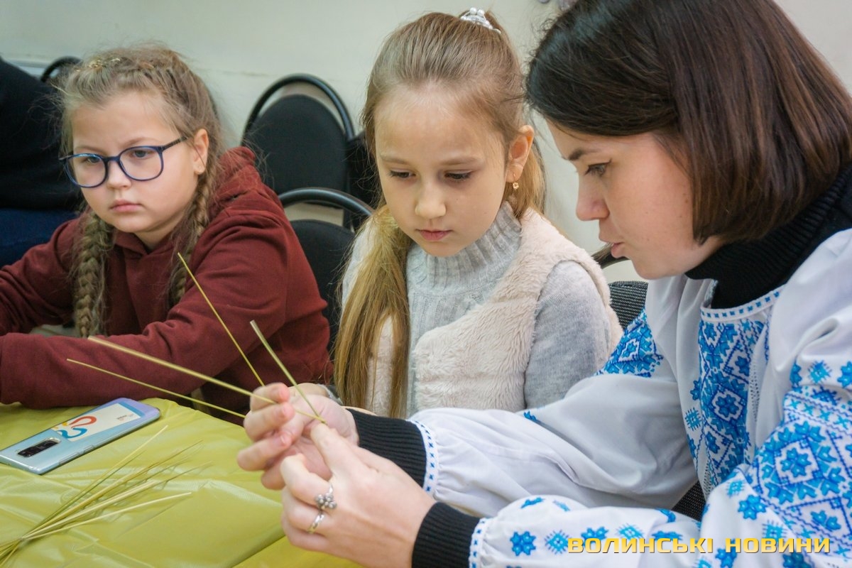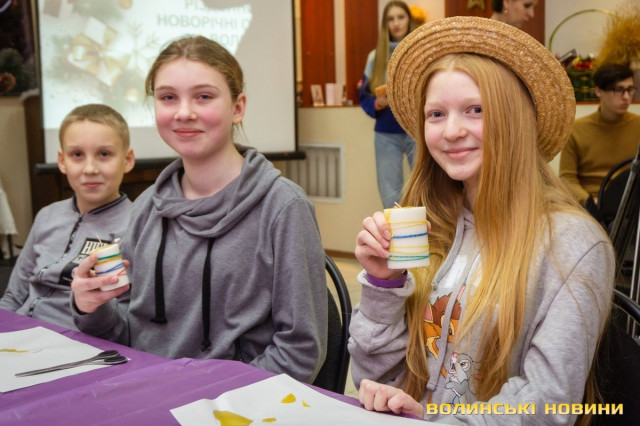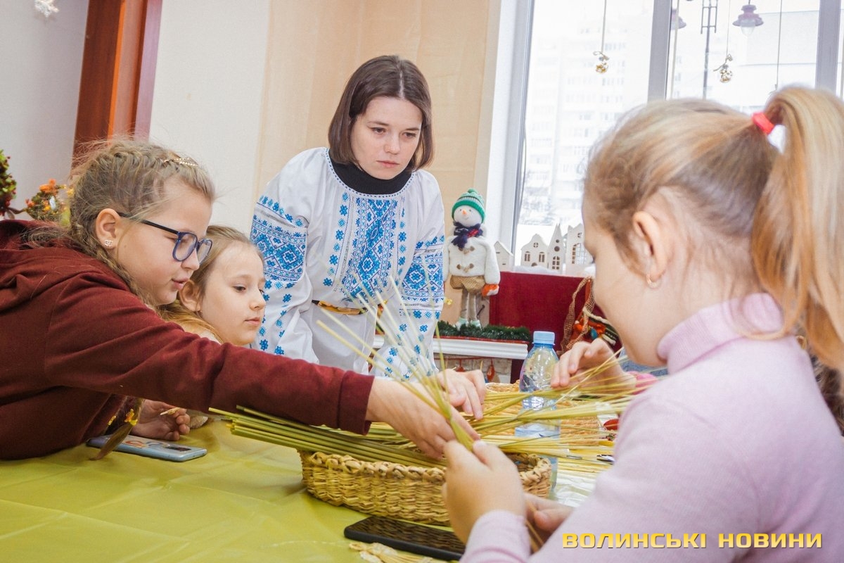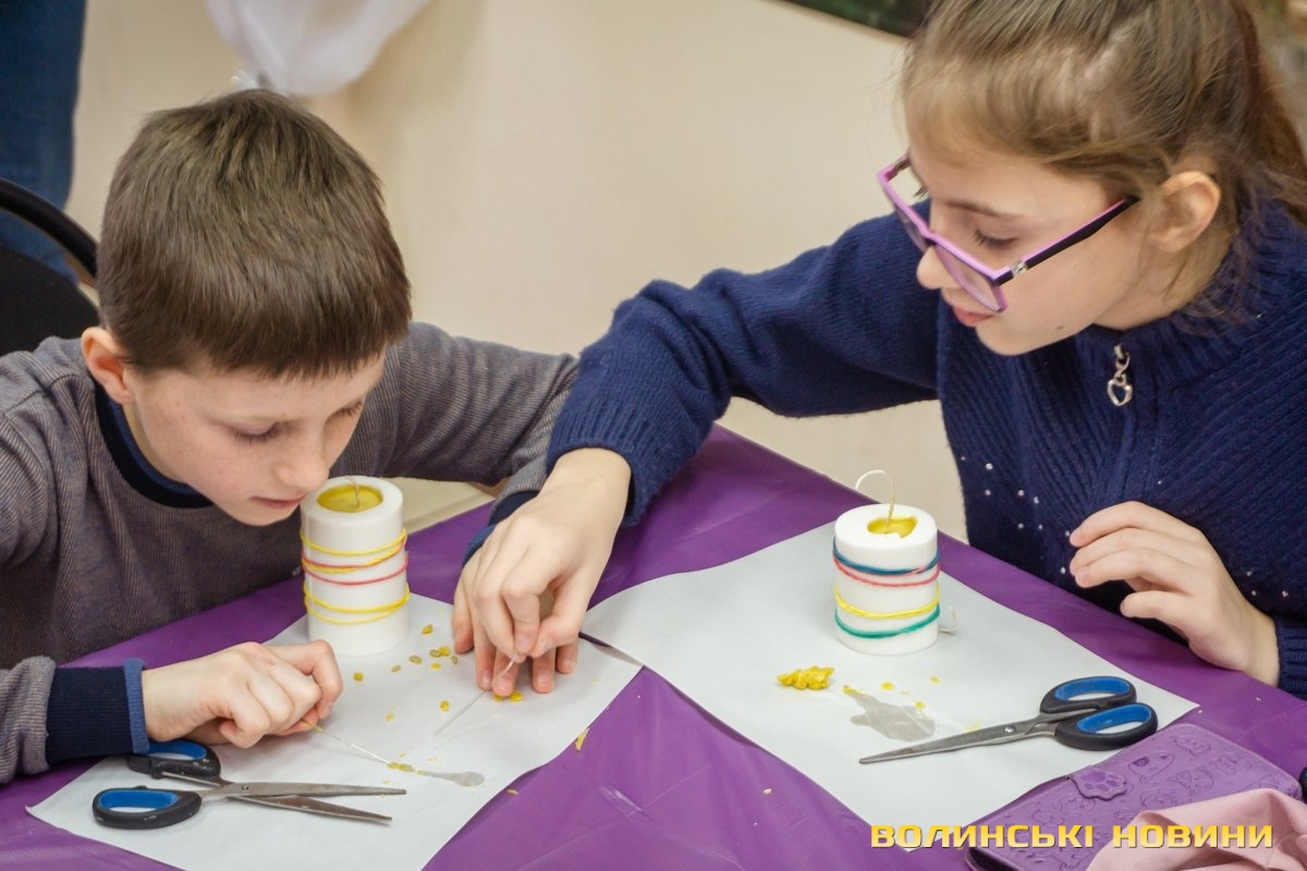 Цьогоріч під час майстер-класів дітки вчитимуться робити текстильні іграшки зі Світланою Кацай, глиняні ялинкові прикраси – зі Світланою Колос, а Олександра Гусєва вчитиме розписувати новорічні кулі. Сьогодні ж секрети творчості передавали майстриня з соломоплетіння Христина Савюк, пасічниця Оксана Черній.«Підготувала для діток майстер-клас із восколиття. Будемо виготовляти справжні фігурні святкові свічки, – ділиться планами Оксана Чорній. – Вирішили знайти щось оригінальне, аби учасникам було цікаво, а вироби з воску – моя родзинка. Для свічок беремо справжній бджолиний віск, гріємо його на водяній бані. У мене є спеціальні силіконові форми – ангелятка, ялиночки, сніговички. Віск заливають у форму, перед цим готують гнотик і ось – отримуємо готову свічку. Дітки люблять ці майстерки, адже виріб майже нічим не відрізняється від магазинного, а окрім того, він виготовлений власноруч. У таких проєктах завжди стараюся брати участь. Добре розумію, як важливо у святкову пору, аби дітки відчули, що їх люблять, про них піклуються, вони потрібні. Тому й продумала цікаву програму: сьогодні робимо свічки, а ще будемо виготовляти медові солодощі, натуркосметику, мило».До галереї завітала директорка департаменту культури Луцької міської ради Тетяна Гнатів. Вона підкреслила значення таких занять.«Ми сьогодні раді вітати перших відвідувачів нашої майстерні. Розпочинаємо проєкт і насамперед хочу подякувати майстрам народної творчості за збереження й популяризацію наших різдвяних традицій. Важливо, що вони передають свої знання, вміння, свій досвід дітям. Саме ви продовжуватимете ці традиції, адже вони лише тоді мають майбутнє, коли є покоління, що їх відтворюють», – зазначила посадовиця.Заняттям передувала презентація від кандидатки історичних наук, провідної наукової співробітниці Волинського краєзнавчого музею Світлани Чибирак. Діти побачили, якими були традиційні святкові вбрання наших предків, дізналися багато цікавого про обряди та звичаї зимового циклу свят, їх зміст і походження.Затим за двома столами із підготовленими інструментами розпочалися заняття. Хтось із дітей обрав соломоплетіння й виготовляв ангеликів, інші визначилися із заготовками й виливали свічки. А були такі, що переходили від столу до столу: цікаво все і не хочеться пропустити уроки від обох майстринь.«Усе цікаво і дуже подобається, адже не просто робимо свічки. Майстриня підготувала для нас медовий квест – капелюх із запитаннями, тому дізнаємося багато цікавого. Наприклад, ніколи не знали, що у бджілки аж п’ять очей і як важко ці комашки трудяться влітку. А вироби – оригінальні. Заберемо і запалимо на зимові свята. З нетерпінням чекаємо наступних занять – все дуже подобається, тому доведеться добряче подумати, до кого з майстрів прийти», – діляться враженнями учасниці майстер-класів Іринка Дідух та Софія Курбан.
