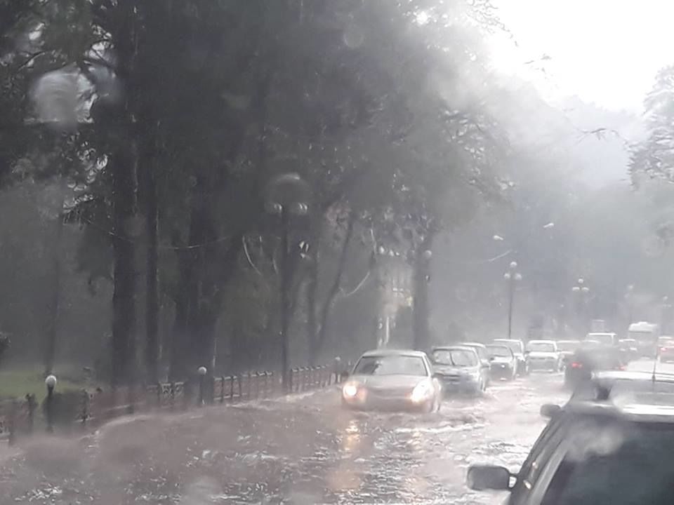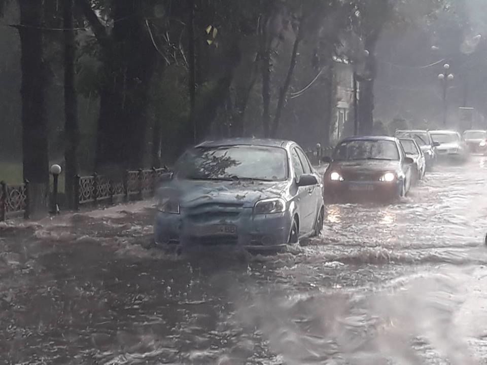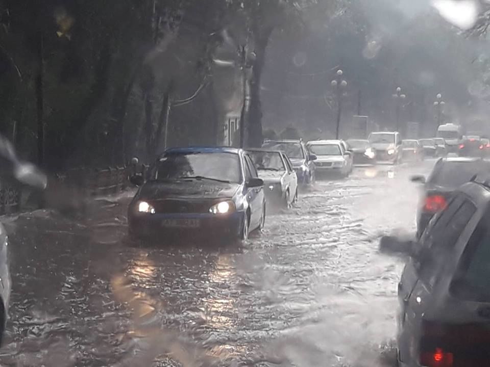 Внаслідок зливи вулиці міста перетворилися на річки із брудною водою. Через це на дорогах утворилися значні затори.
