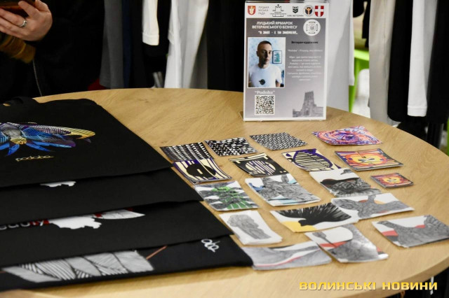 Луцький ветеран-художник Юрій Ляшук на ярмарку представляє одяг та текстиль з цікавими принтами, які перероблює в ілюстрації з власних картин. Цією справою вже займається майже рік.«Головна ідея в тому, щоб перенести мої картини на одяг, аби мистецтво в такій формі стало ближчим до людей. Наш бізнес лише зароджується, у нас немає ще майстерні, тому працюємо вдома і розвиваємо соцмережі, щоб залучати клієнтів», – розповідає Юрій Ляшук.