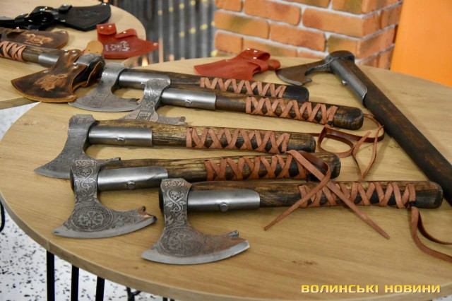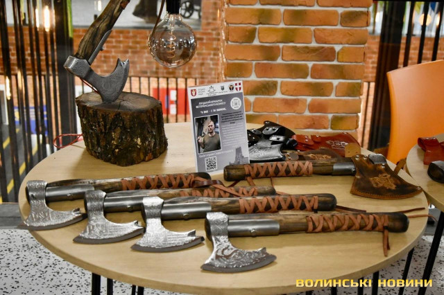 Читати ще: Швейну машинку подарував чоловік: дружина безвісти зниклого поліцейського представила свою справу на ветеранському ярмарку в ЛуцькуУнікальним виготовленням виробів з металу займається ветеран війни з Волині Павло Скшетуський. У власній кузні чоловік вже близько пʼяти років створює креативні орнаменти на сокирах та інших виробах.