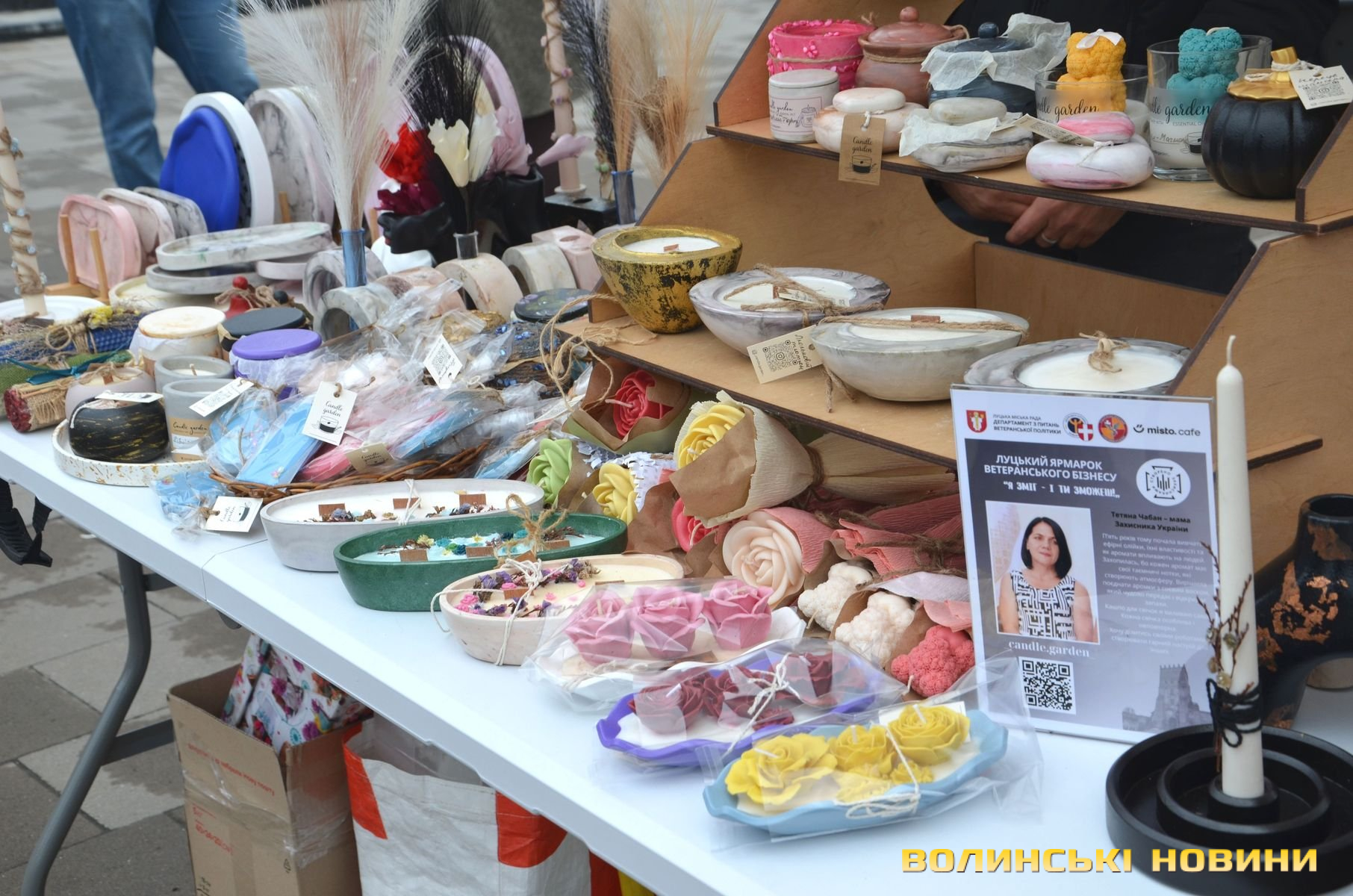 «У мене найчастіше купують автопарфуми. На виїзних ярмарках – менше, але в Луцьку чудово йде. Під час одного з ярмарків мене запросили на фестиваль як майстриню зі свічковаріння. Крім того, вдалося знайти нових друзів, клієнтів і бути у ветеранському ком’юніті. Тут завжди є спілкування і розуміння, що ти в колі своїх людей. Це морально дуже заряджає», – наголосила волинянка.Упродовж дня лучани підтримували ветеранів і рідних захисників та насолоджувалися вуличним концертом. Такі ярмарки – не про торгівлю. Там люди, у чиї життя увірвалася війна, знаходять нові стимули жити далі.