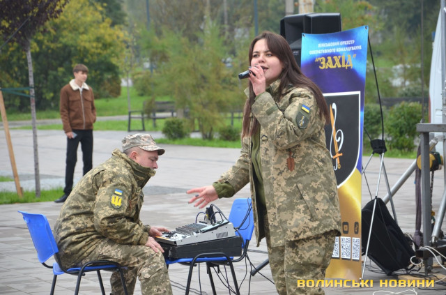Для гостей і учасників виступали 6-й військовий оркестр оперативного командування «Захід», колектив Палацу учнівської молоді, фолькгурт «Чачка» і волинський співак Аркадій Войтюк. Патріотичні піснеспіви, танці і вірші додали події святкового настрою.Як поінформував директор департаменту з питань ветеранської політики Олег Кобилинський, нинішній ярмарок став своєрідним фестивалем, бо вперше залучили музикантів і артистів.