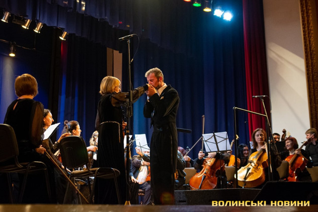 Яскравим фіналом міжнародного конкурсу став концерт, під час якого глядачі мали змогу ще раз насолодитися музикою Ігоря Стравінського. Їі глядачам презентували Академічний симфонічний оркестр (головний диригент – заслужений діяч мистецтв України Мирослав Кріль) та Академічний камерний хор Тернопільської обласної філармонії «Бревіс» (художній керівник – заслужений артист України Святослав Дунець).Концерт розпочався з творів українського композитора польського походження Сергія Борткевича – увертюри до «Казкової опери» та балетної сюїти «Тисяча і одна ніч». На жаль, за часів Радянського Союзу це ім’я було майже не відоме, адже музикант емігрував за кордон. Однак з 2000 років шанувальники музики відкривають для себе творчість Сергія Борткевича, якого називають «українським Рахманіновим».Під час другої частини концерту пролунали 2 твори Стравінського – духовний твір «Меса» (виконав Академічний камерний хор) і музика до балету «Гра в карти». Варто окремо зазначити про почесного гостя XVI музичного фестивалю – диригента, народного артиста України Ігоря Блажкова, який проживає у Німеччині. Ця легендарна особистість доклала максимум зусиль для того, щоб ім’я та творчість Стравінського повернулись на батьківщину. Чого варте лише особисте листування Ігоря Блажкова з великим композитором, виконання його твору вперше у Радянському Союзі (1959 рік), підготовка його ювілейної концертної програми у Ленінграді, відкрив Устилуг громадськості, як «родинне гніздо» Стравінських. Нині ж диригент особисто керував оркестром, під час виконання музичних творів Майстра.Завершився концерт на високій ноті. Автор ідеї проведення Фестивалю, магістр державного управління Василь Ворон вручив пам’ятні дипломи гостям з Тернополя. Під номером 124 – Академічному симфонічному оркестру та під номером 125 - Академічному камерному хору. Натомість 2 спеціальними подяками, які розміщуються у музеї Стравінського в Устилузі, Василь Ворон нагородив народного артиста України Ігоря Блажкова та заслуженого діяча мистецтв України, директора Палацу культури міста Луцька Юрія Войнаровського.Фото Олександра Дурманенка.