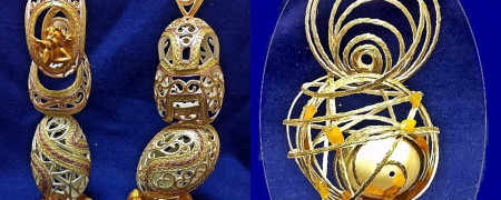 Нові вироби, зі слів майстра, асоціюються з космосом. Яєчні шкаралупи, оздоблені металом, чоловік встановив на ювелірній смолі з бурштиновою крихтою.