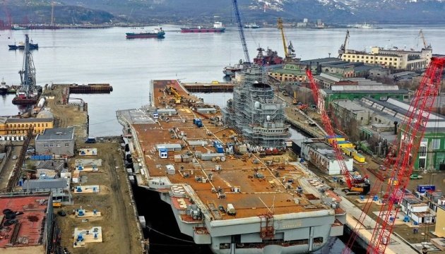 «Єдиний російський авіаносець – важкий авіаносний крейсер «Адмірал Кузнєцов» перебуває в аварійному стані. Наразі судно перебуває на 35-му судноремонтному заводі (Мурманськ)», – йдеться в повідомленні.