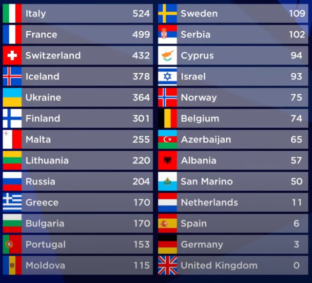 У результаті напруженої боротьби перемогу здобув гурт «Maneskin», який представляв Італію. Він набрав загалом 524 бали (206 від журі й 318 від глядачів).Натомість, друге місце здобула співачка Барбара Праві, яка представляла Францію. Вона набрала 499 балів (248 від журі й 251 від глядачів).На третій сходинці – найбільш знаного пісенного конкурсу Європи й не тільки виконавець Gjon’s Tears із Швейцарії із 432 балами (267 від журі й 165 від глядачів).На четвертому місці із 378 балами (198 від журі й 180 від глядачів) опинився гурт «Daði og Gagnamagnið» з Ісландії. До слова, виступ музикантів вперше за історію Євробачення показували в записі, оскільки у двох членів делегації виявили COVID-19.Водночас український гурт «Go-A» у результаті глядацького голосування зайняв п’яте місце, отримавши 364 бали (97 балів від національного журі й 267 балів від глядачів).