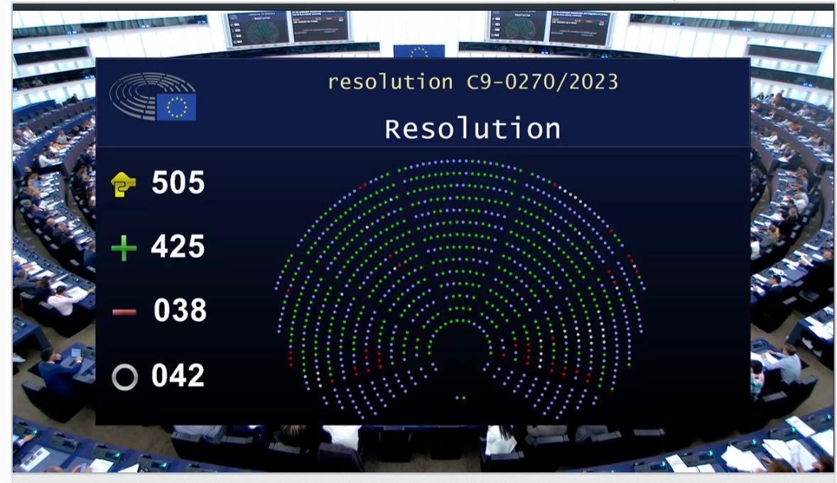 За резолюцію проголосували 425 депутатів, 38 голосували проти, 42 – утрималися.
