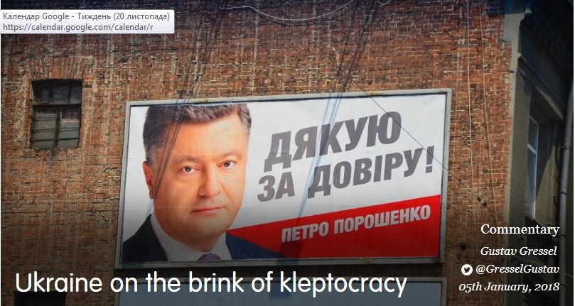 Про це пише старший науковий працівник Європейської ради міжнародних відносин (European Council On Foreign Relations – ECFR) Густав Грессель у своїй статті «Україна на межі клептократії» (Ukraine on the brink of kleptocracy) на сайті ECFR.