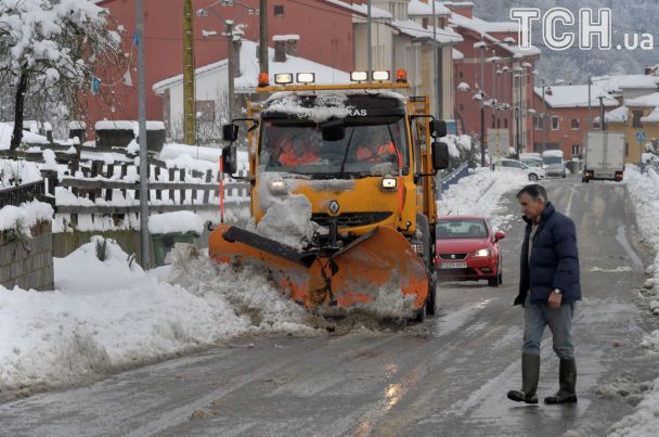 Через заметілі в Іспанії поліція закрила 18 автомагістралей. Ще на майже сотню доріг не пускають машини, на колесах яких немає ланцюгів проти ковзання.