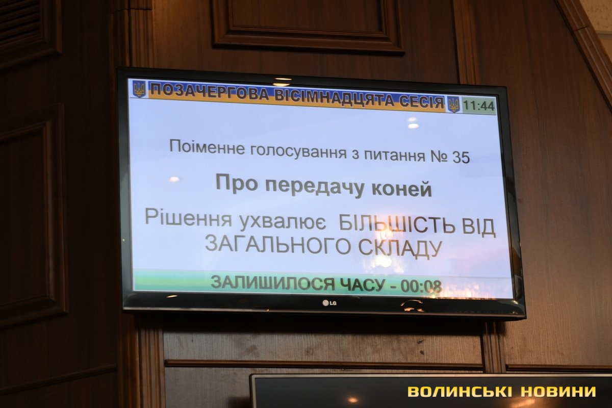 Розглянули теж низку майнових питань, наприклад, Волинському краєзнавчому музею передали в постійне користування дві земельні ділянки на вулицях Шопена та Ярощука в Луцьку, Бородянській громаді – два ГАЗи, а Берестечківському психоневрологічному інтернату – двох коней.
