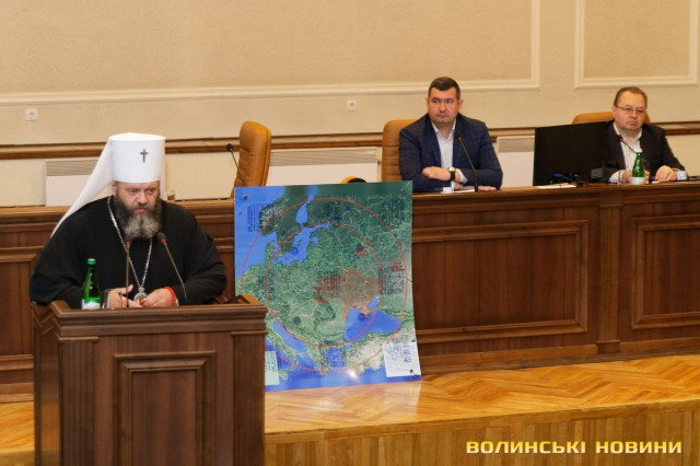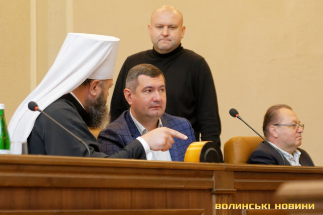 Місце у президії поруч із головою облради та його заступником Григорієм Пустовітом посідав владика Михаїл, митрополит Луцький і Волинський Православної церкви України. Воно й не дивно, адже першим депутати розглядали питання щодо заборони УПЦ МП на території України.Як акцентував депутат Іван Мирка, Волинська область – одна з небагатьох, які досі не проголосували за те, щоб звернутися до Верховної Ради, Кабміну, РНБО про заборону Московського патріархату. А свободівець Олександр Пирожик у притаманній йому емоційній манері наголосив, що давно потрібно провести зачистку «руского міра» і в церкві.Деякі з депутатів були у військовому камуфляжі