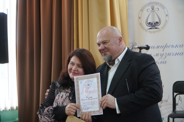 Є серед викладачів і ті, хто мужньо стали на захист України від російських загарбників. Від перших днів повномасштабного вторгнення росії добровольцем приєднався до лав ЗСУ колишній директор Андрій Пальоха. Узяли до рук зброю також Юліан Пальоха, Юрій Бражніков, Назар Мазуркевич. Цього дня на свято з усіх усюд з’їхались випускники різних років, зібрались викладачі, учні, друзі школи.«Сьогодні маємо привід пишатися досягненнями та перемогами наших учнів. З гордістю згадуємо наших випускників, серед яких є відомі музиканти, композитори, викладачі та просто люди, для яких музика стала невід’ємною частиною життя. Щиро дякую кожному за ваш вклад у розвиток школи, за вашу любов до музики, за те, що разом ми творимо цей дивовижний світ музичного мистецтва. Нехай музика завжди звучить у ваших серцях!» – звернувся до присутніх у залі директор школи Роман Віслобоков.